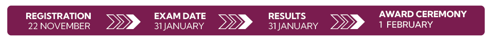 The Global Round Exam will take place on January 31 from 10:00 AM to 11:30 AM; please check the program schedule for venue and reporting time.